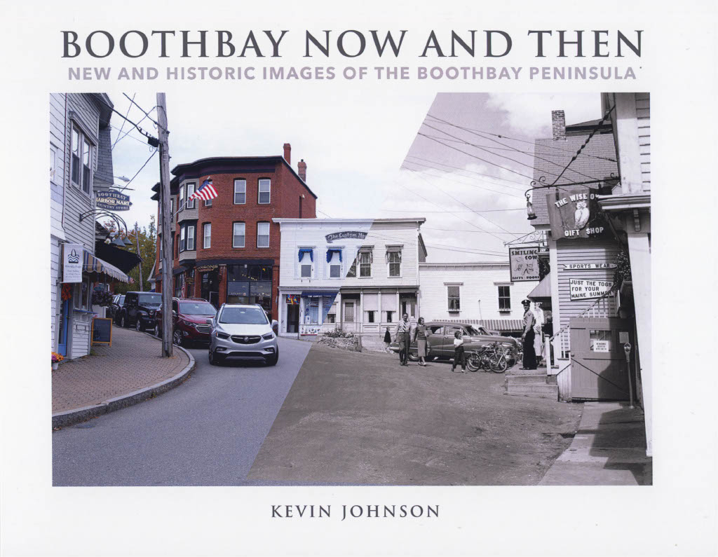 I am thrilled to announce my new book Boothbay Now and Then has arrived from the printers! Its been a long time coming! This project began a little over three years ago when George McEvoy of Boothbay Harbor asked me to do a photo book of the Boothbay Region. George was a giant figure in Boothbay. He was the founder of the Boothbay Railway Museum, and saved numerous historic buildings, including Boothbays original town hall, from the wrecking ball. He championed the areas history and was always very generous to projects that benefited the people of Boothbay. The project was funded by the foundation established by his mother, Mildred H. McEvoy. Sadly George passed away in June shortly after seeing the final draft version of the book.